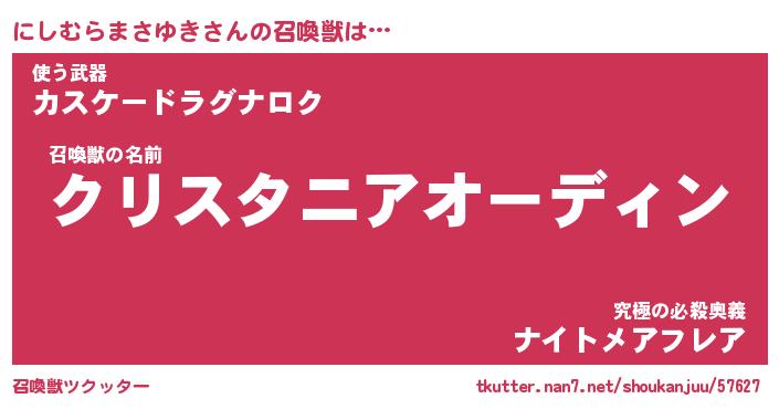 | 男性向けラノベタイトル風あだ名 | 『ニシムラマサユキアートオンライン』 |