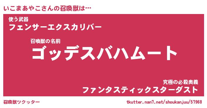 | ヒーロー風カッコイイあだ名 | 『スーパーイコマアヤコ』『天弓騎士イコ』 |