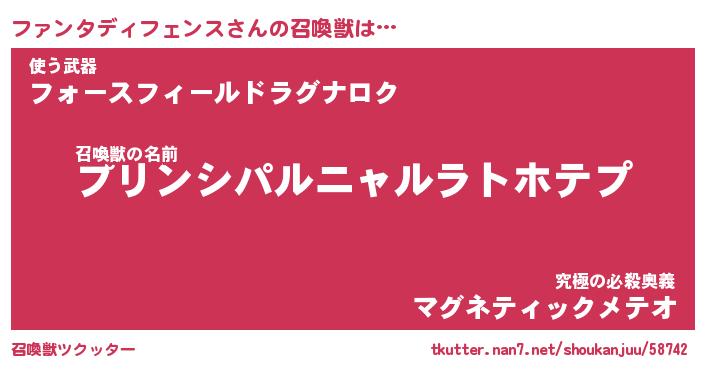 | 男性向けラノベタイトル風あだ名 | 『ファンタディフェンスの憂鬱』 |