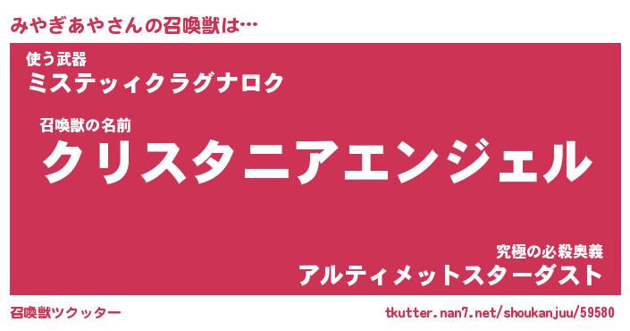 | 伝説のあだ名 | 『封印されし傭兵みやぎあや』 |