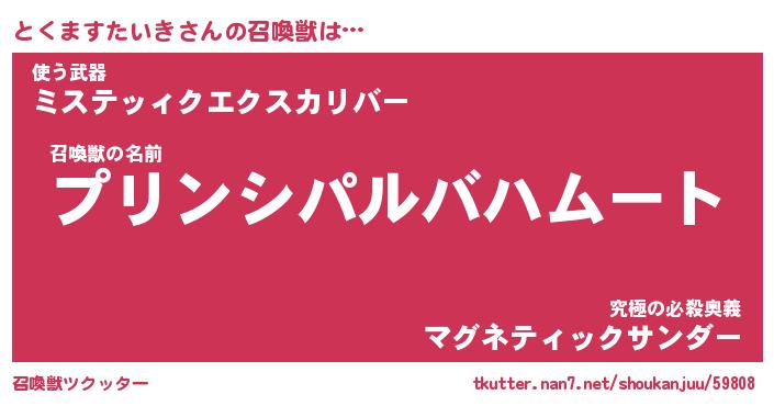 | 女子向けラノベタイトル風あだ名 | 『とくますたいき姫と円卓の騎士』 |