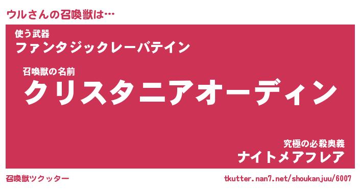 | 自動車の名前っぽいあだ名 | 『ウルティマ』『ウクア』『ヴィッウ』 |