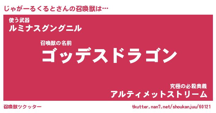 | 伝説のあだ名 | 『不死鳥の竜騎士じゃがーるくると』 |