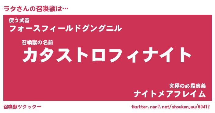 | ファンタジー風あだ名 | 『ラタフェル』『エターナルラター』 |