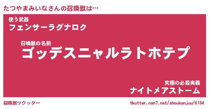 | 胡散臭い通販商品みたいなあだ名 | 『モテモテ間違いなし霊験あらたかなお札…その名も「たつやまみいな」』 |