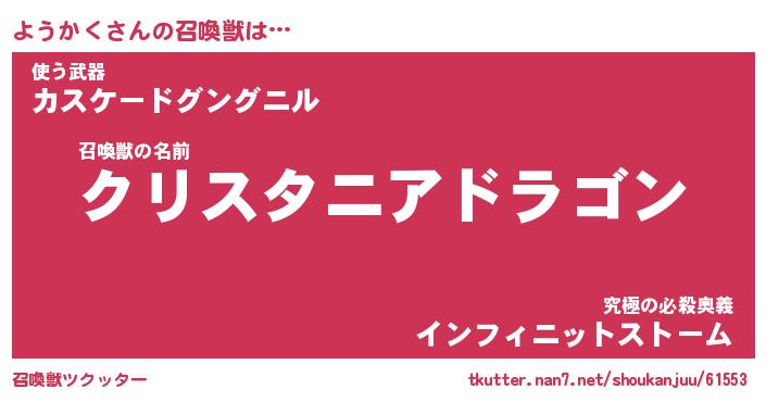 | ファンタジー風あだ名 | 『ヨウフェル』『エターナルヨウカクー』 |