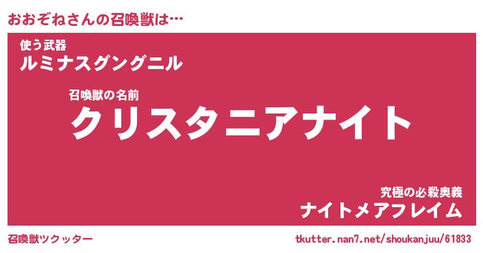 | ヒーロー風カッコイイあだ名 | 『スーパーオオゾネ』『天弓騎士オオ』 |