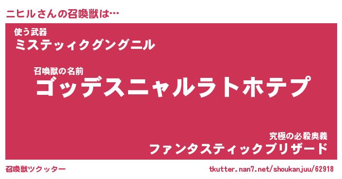 | ファンタジー風あだ名 | 『ニヒフェル』『エターナルニヒルー』 |