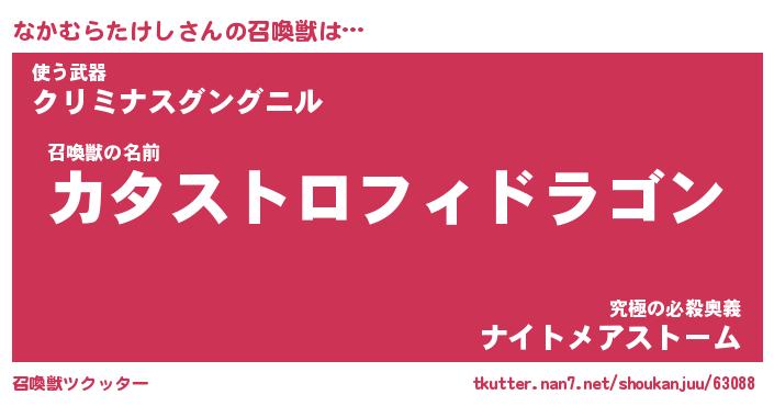 | 伝説のあだ名 | 『封印されし竜騎士なかむらたけし』 |