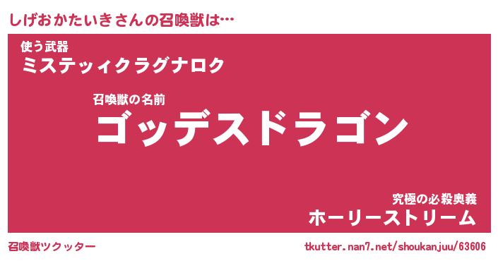 | 伝説のあだ名 | 『不死鳥の竜騎士しげおかたいき』 |