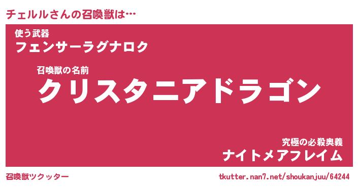| 伝説のあだ名 | 『封印されし竜騎士チェルル』 |