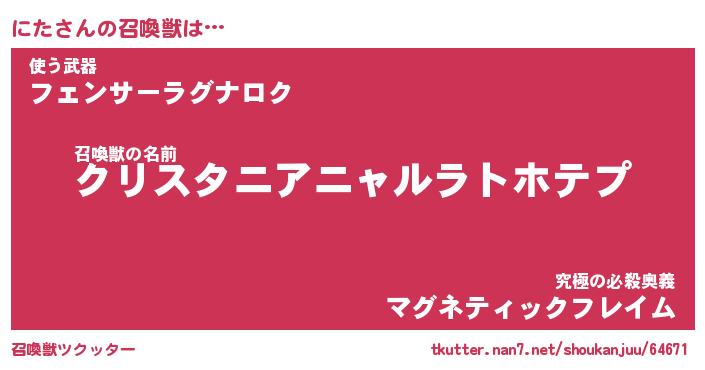 | ファンタジー風あだ名 | 『ニタフェル』『エターナルニター』 |