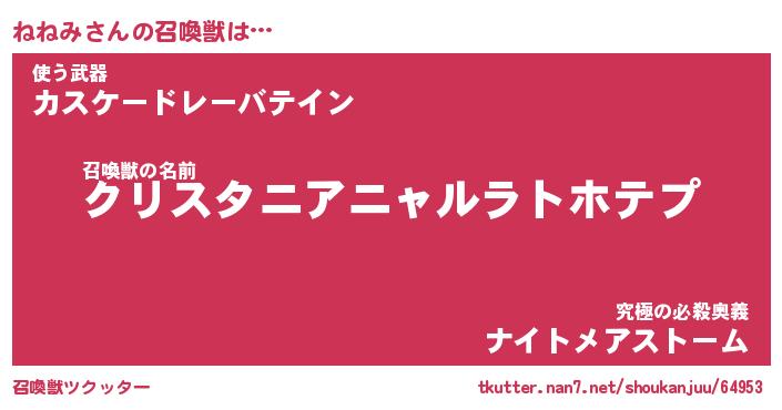 | ファンタジー風あだ名 | 『ネネフェル』『エターナルネネミー』 |