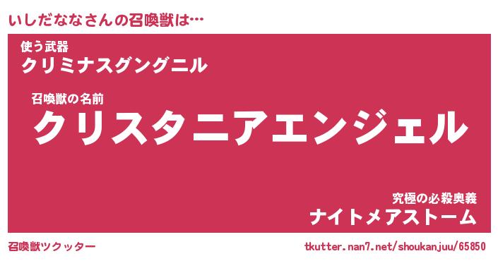 | ヒーロー風カッコイイあだ名 | 『スーパーイシダナナ』『暗黒騎士イシ』 |