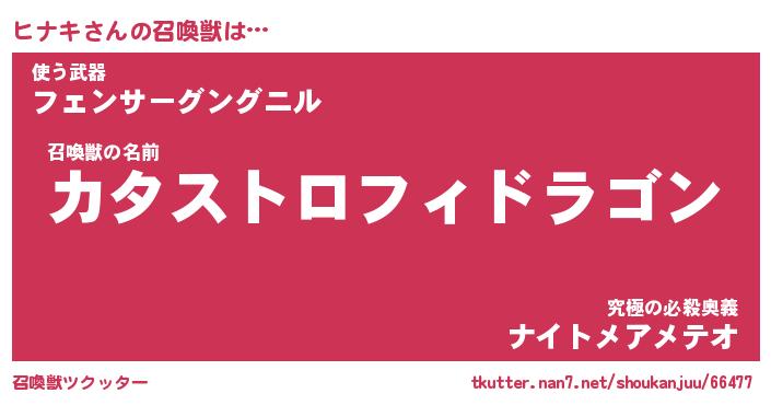 | 自動車の名前っぽいあだ名 | 『ヒナティマ』『ヒクア』『ヴィッヒ』 |