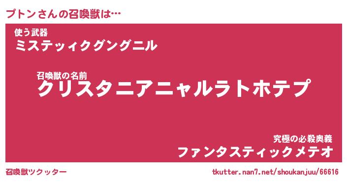| ヒーロー風カッコイイあだ名 | 『スーパープトン』『ウルトラプトンマン』 |