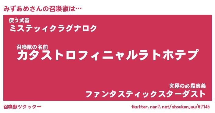 | ファンタジー風あだ名 | 『ミズフェル』『エターナルミズアメー』 |