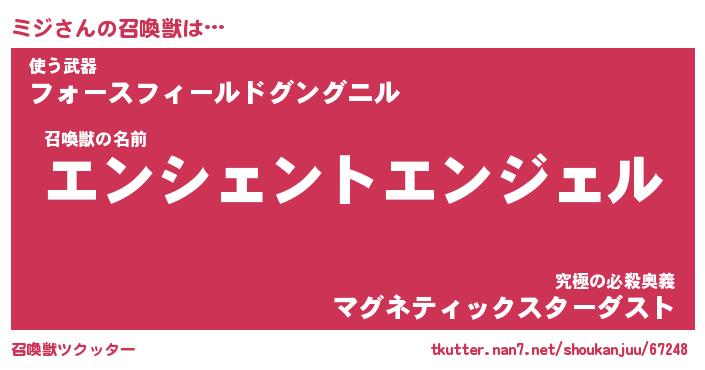| ファンタジー風あだ名 | 『ミジフェル』『エターナルミジー』 |