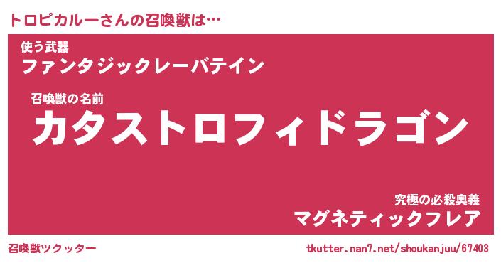 | 伝説のあだ名 | 『封印されし竜騎士トロピカルー』 |