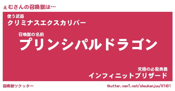 | ファンタジー風あだ名 | 『ェムフェル』『エターナルェムー』 |
