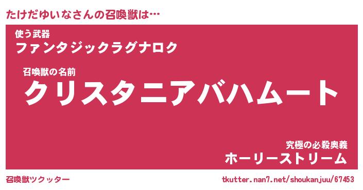 | ヒーロー風カッコイイあだ名 | 『スーパータケダユイナ』『黄金騎士タケ』 |