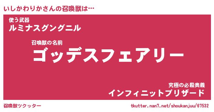 | ヒーロー風カッコイイあだ名 | 『スーパーイシカワリカ』『幻影騎士イシ』 |