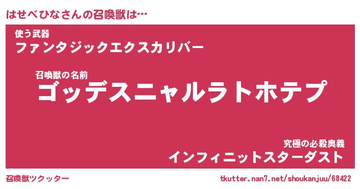 | 伝説のあだ名 | 『不死鳥のスナイパーはせべひな』 |