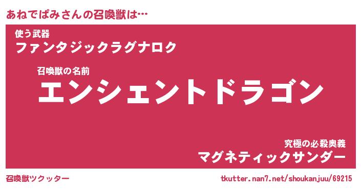 | 伝説のあだ名 | 『伝説の竜騎士あねでぱみ』 |