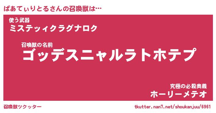 | 胡散臭い通販商品みたいなあだ名 | 『モテモテ間違いなし霊験あらたかなお札…その名も「ぱあてぃりとる」』 |