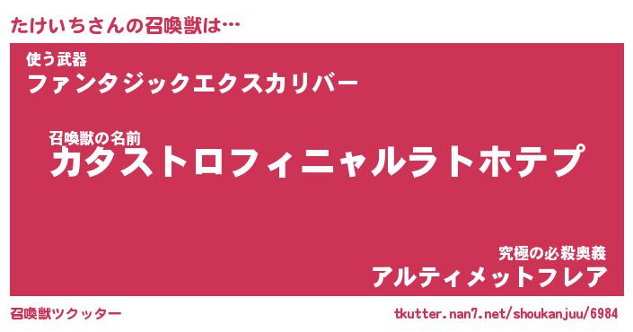 | ファンタジー風あだ名 | 『タケフェル』『エターナルタケイチー』 |