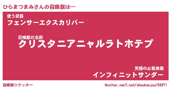 | ヒーロー風カッコイイあだ名 | 『スーパーヒラマツマミ』『幻影騎士ヒラ』 |