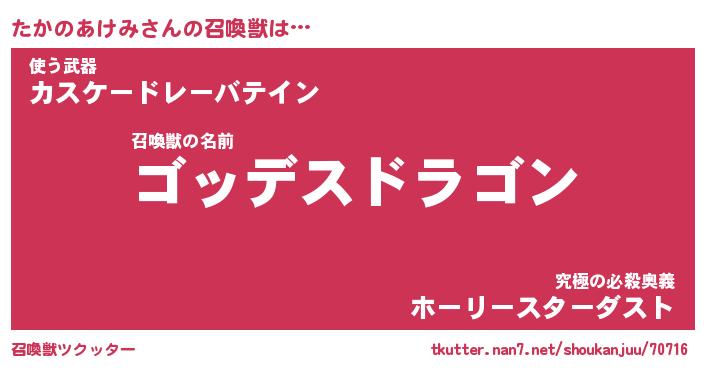 | 男性向けラノベタイトル風あだ名 | 『タカノアケミアートオンライン』 |