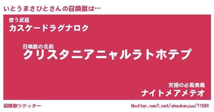 | 伝説のあだ名 | 『封印されしスナイパーいとうまさひと』 |