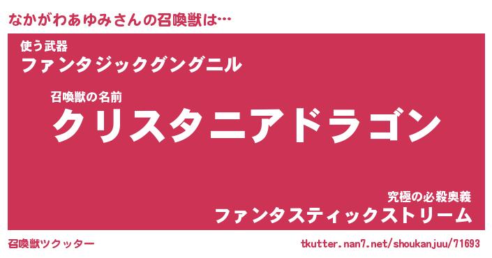 | 伝説のあだ名 | 『封印されし竜騎士なかがわあゆみ』 |