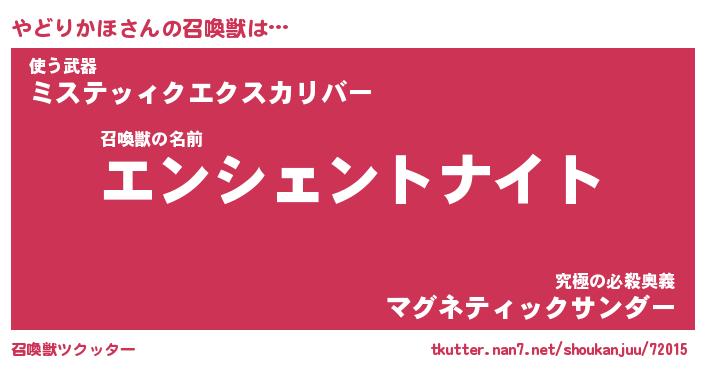 | ヒーロー風カッコイイあだ名 | 『スーパーヤドリカホ』『暗黒騎士ヤド』 |