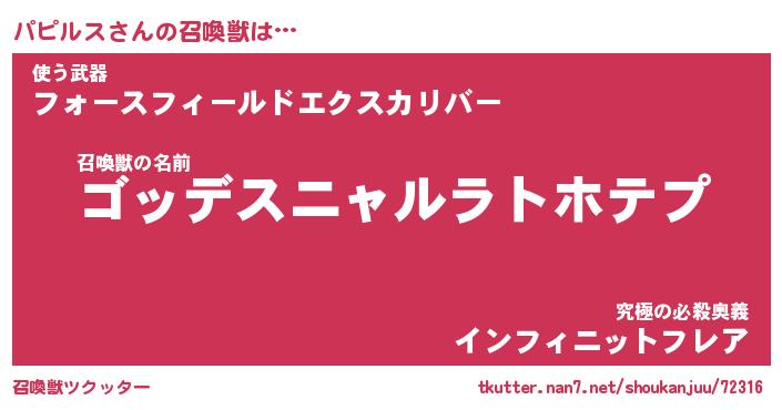| ヒーロー風カッコイイあだ名 | 『スーパーパピルス』『幻影騎士パピ』 |