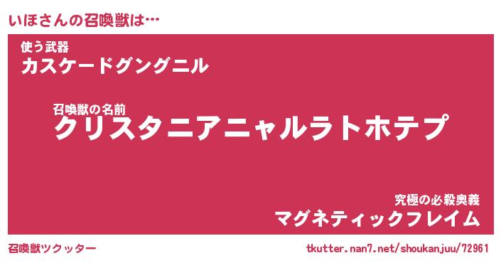 | ツイッター | いほさんのツイッターID『namakemono_nyan』 |