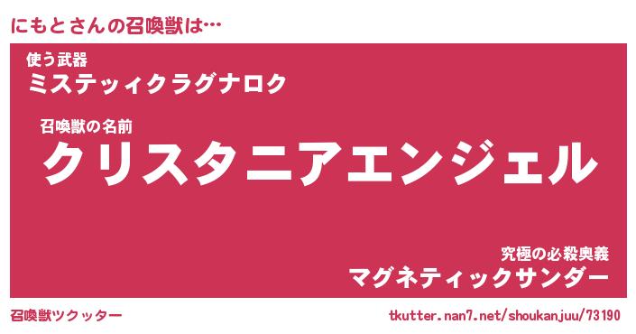 | ファンタジー風あだ名 | 『ニモフェル』『エターナルニモトー』 |