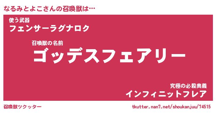 | 女子向けラノベタイトル風あだ名 | 『なるみとよこ姫と円卓の騎士』 |