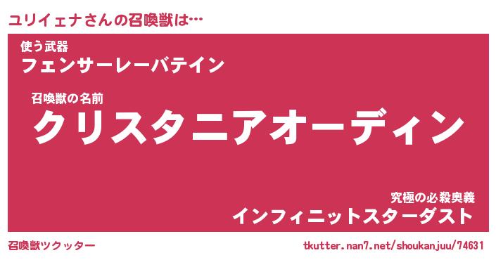 | 自動車の名前っぽいあだ名 | 『ユリティマ』『ユスラー』『ユント』 |
