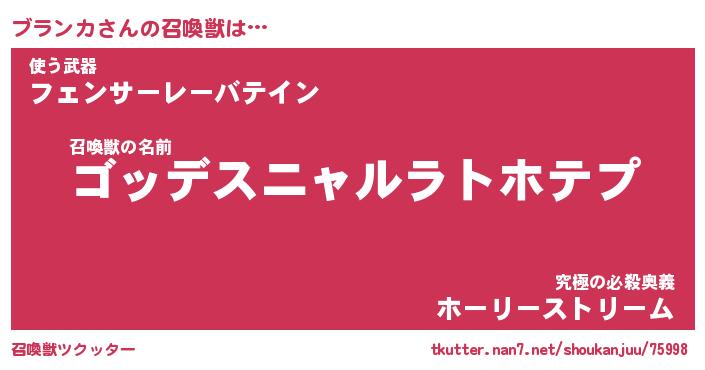 | 意味不明あだ名 | 『ペロリンブランカ』『永久保存ブランカ』 |