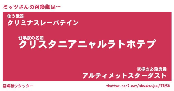 | ファンタジー風あだ名 | 『ミッフェル』『エターナルミッツー』 |