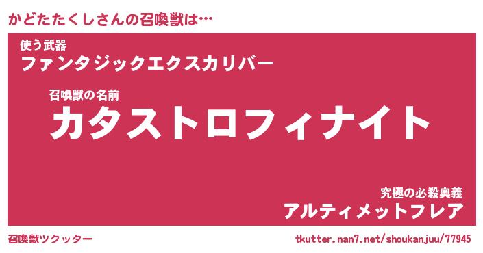 | 伝説のあだ名 | 『封印されし傭兵かどたたくし』 |