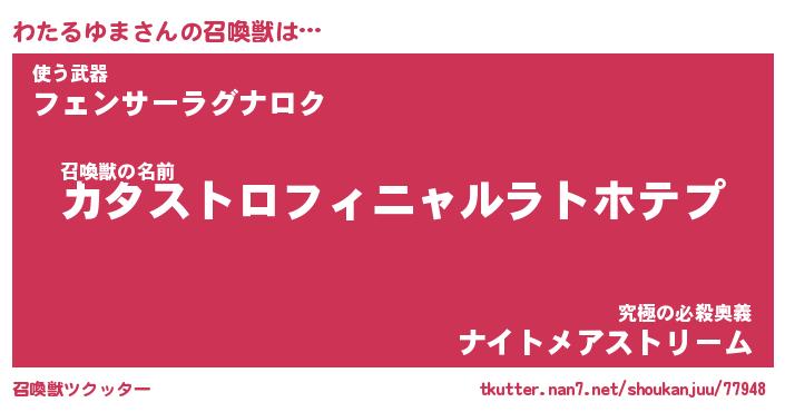 | 伝説のあだ名 | 『封印されしスナイパーわたるゆま』 |