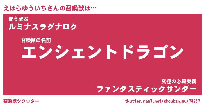 | 伝説のあだ名 | 『伝説の竜騎士えはらゆういち』 |