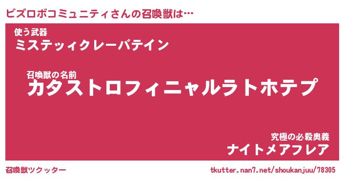 | 女子向けラノベタイトル風あだ名 | 『誰かこのビズロボコミュニティを説明してください! ~契約から始まるウェディング~』 |