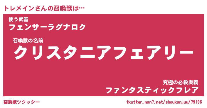 | ツイッター | トレメインさんのツイッターID『namakemono_idle』 |