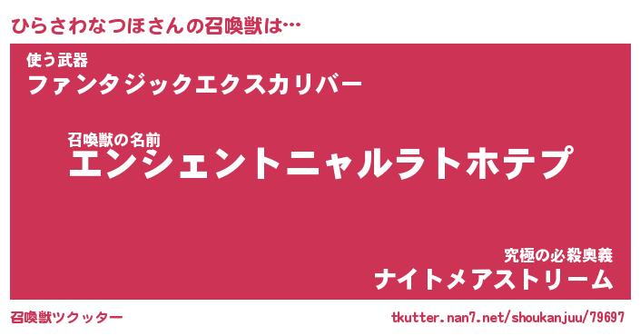 | 胡散臭い通販商品みたいなあだ名 | 『必ず成功する霊験あらたかなお札…その名も「ひらさわなつほ」』 |