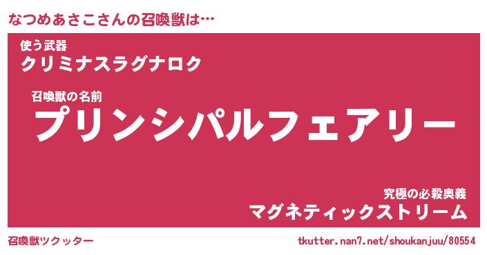 | ヒーロー風カッコイイあだ名 | 『スーパーナツメアサコ』『魔戒騎士ナツ』 |