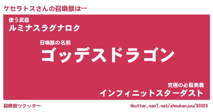 | ヒーロー風カッコイイあだ名 | 『スーパーケセラトス』『幻影騎士ケセ』 |